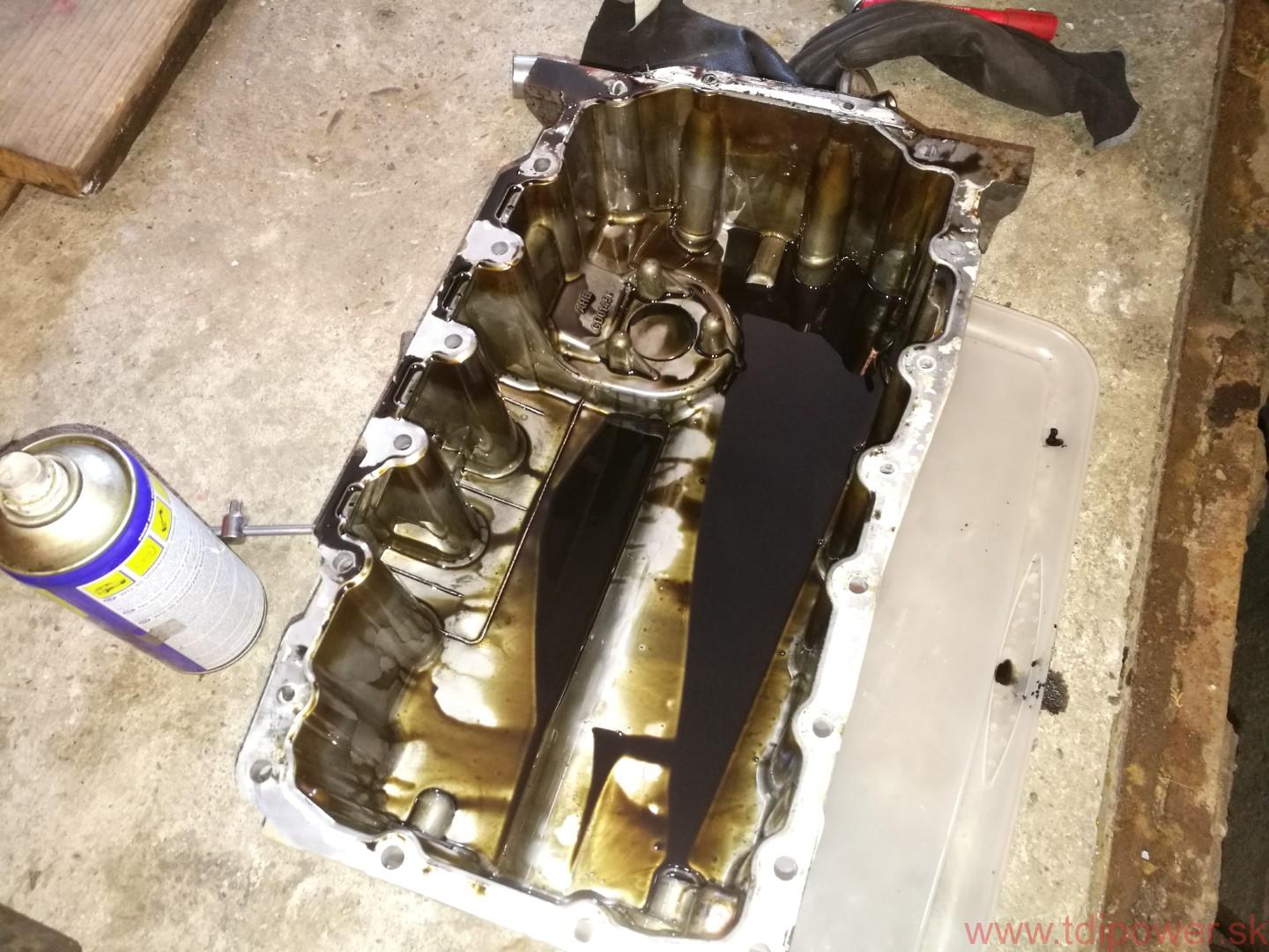 Nedopatrením sa mi podarila vymazať fotka, kde bolo vidieť nanesenie tesniaceho tmelu. Po nanesení tesniaceho tmelu musíte do 15min namontovať olejovú vaňu na auto. Skrutky treba doťahovať do kríža. Je lepšie nechať tmel dobre preschnúť, záleží aký máte typ. Ja som po 3 hodinách nalial motorový olej a nechal som bežať auto na voľnobehu 30min.