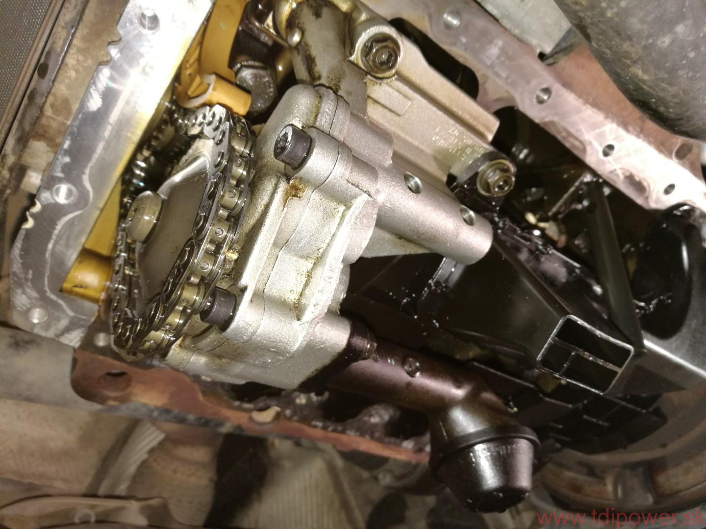 Pozor bude sa na Vás valiť olej zo všetkých strán. Treba si okolie vyčistiť(používať len handru na to určenú, nie nejakú zo zeme. Demontujte čierny plast a olejové čerpadlo 3 skrutky imbus č.5. Budete pekne vidieť ojnice.
