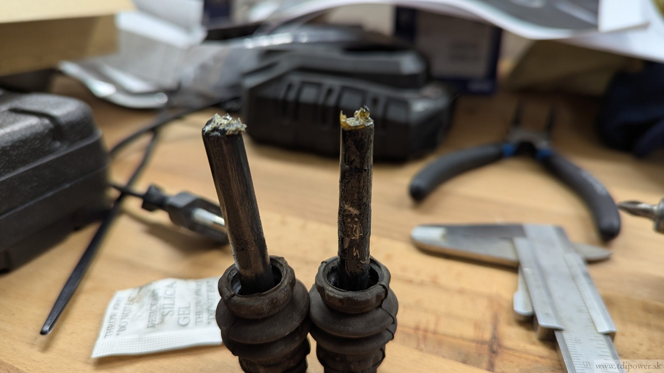Po rozobratí zadnej ľavej brzdy bolo cítiť veľkú vôľu na vodítkach. Jedno vodítko malo menší priemer. Zakúpená sada Quick Brake stála nejakých 6€ tak nebolo o čom. Doma si to vymeníte bez problémov aj sami stačí Vám bežne vybavenie. Doporučujem vyčistiť aj vnútro brzdiča kde sa pohybujú vodítka. Samozrejme je nutné aj premazanie vodítok, ale v sade Quickbreake by malo byť všetko.