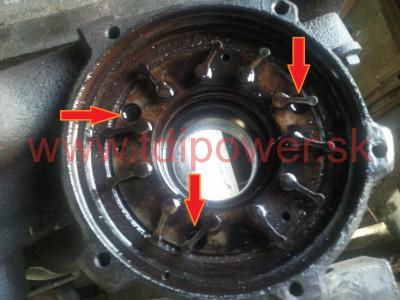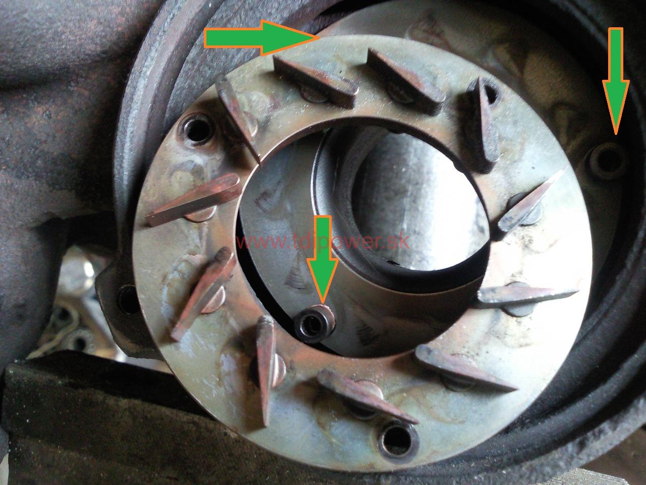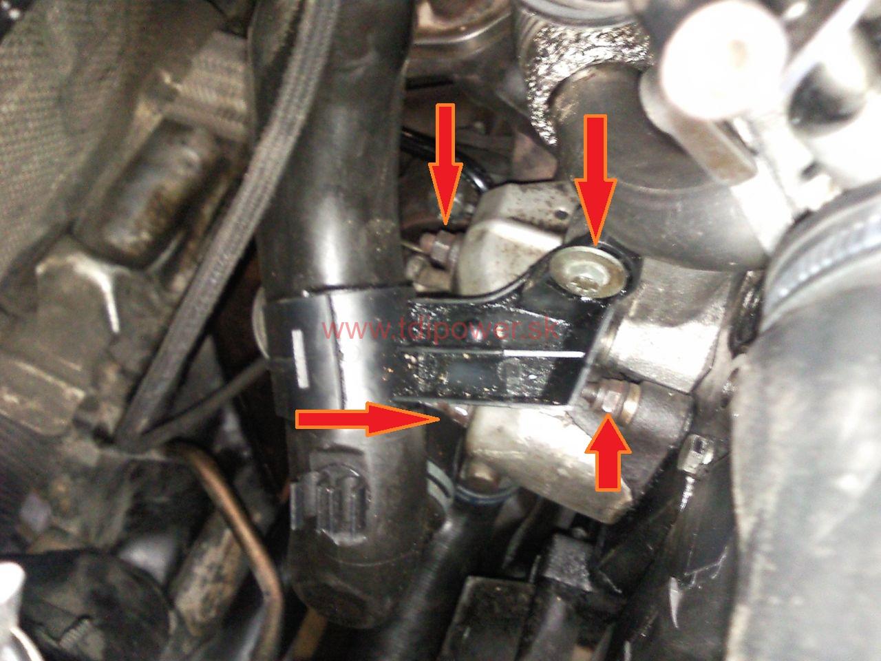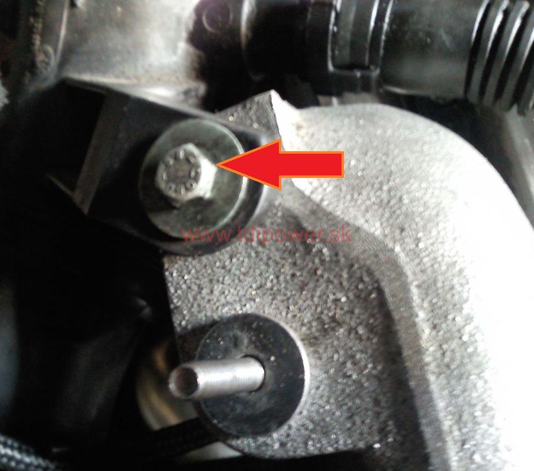 Od spodu odkrútime 3 matky výstupu do výfukového potrubia a odtiahneme smerom do ľava aby sme potom turbo mohli vybrať smerom do hora. Oddelenú časť priviažeme – nemala by veľmi prevísať