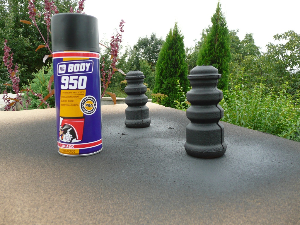 V rpvom rade odporúčam malú investíciu do spreja: Body 950. je to gumená farba na báze asfaltu… Prečo? Aby nám new pryž ostal dlhšie pružný a nerozpadnutý… Cena cca.4,90 Eur.