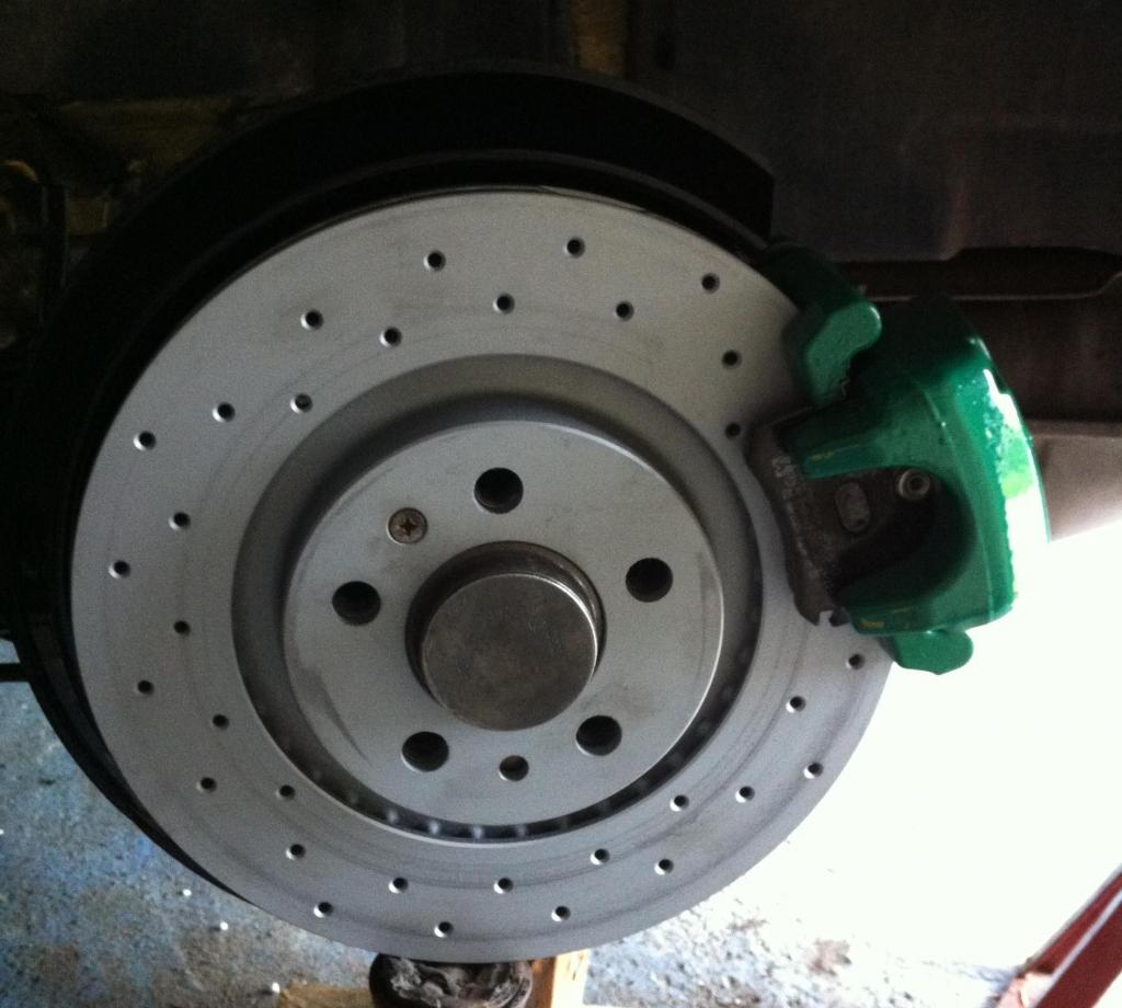 A zde je výsledek. Bohužel vznikne kus neodbržděného kotouče cca. 3mm, jelikož je kratší destička. Je možnost to nechat být nebo ten kousek nechat utočit na