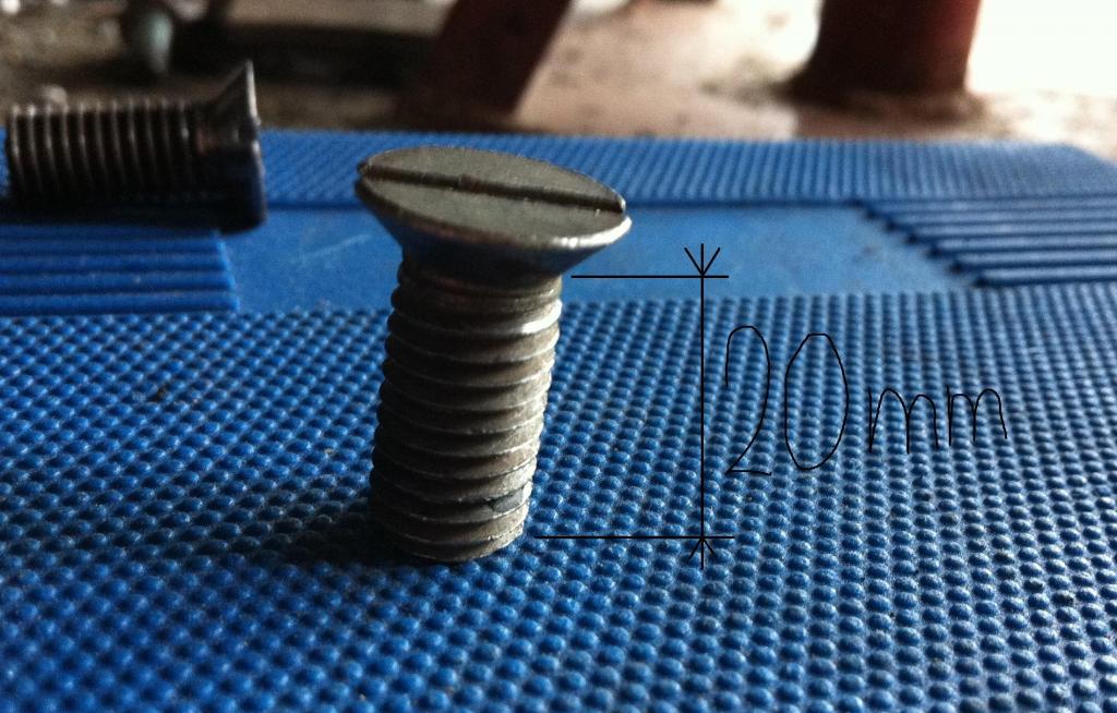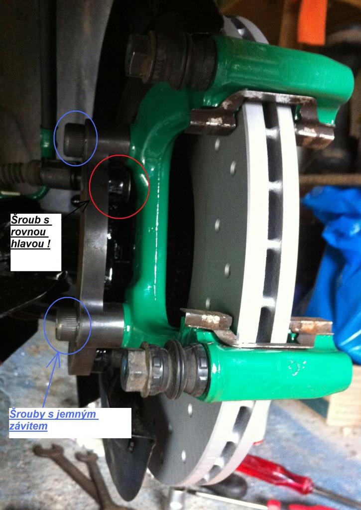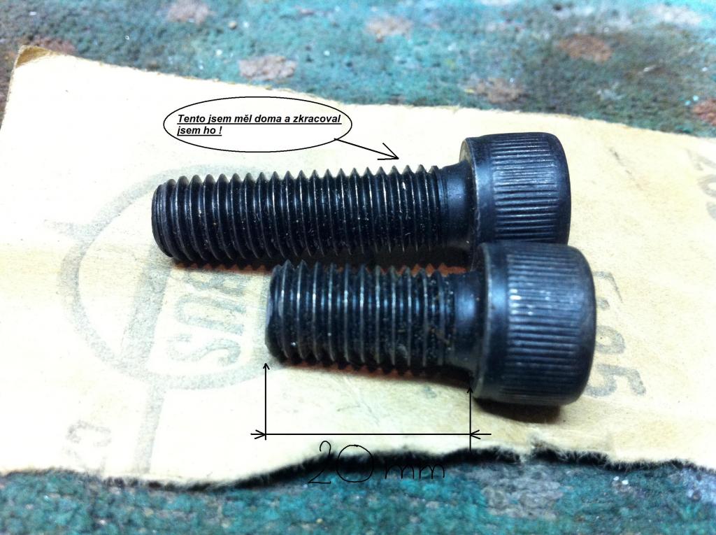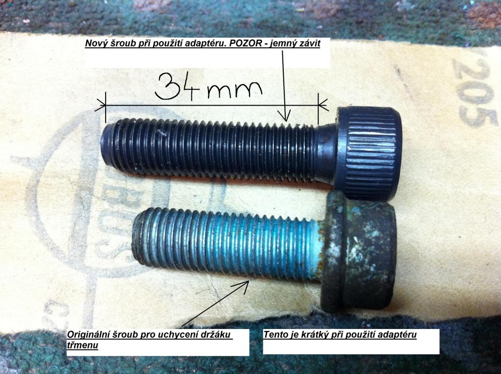 Imbus se zde nedá dát, jelikož by překážel uchycení držáku třmenu na adaptér. Proto je zde potřeba šroub s rovnou hlavou na rovný šroubovák o délce závitu taktéž 20mm.