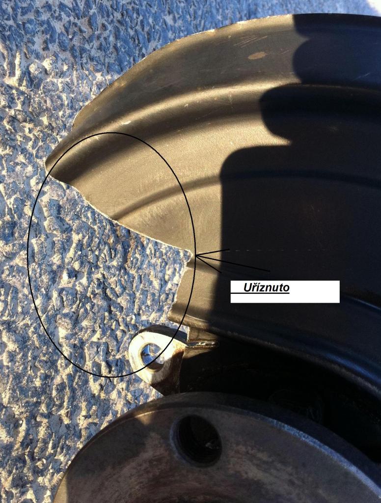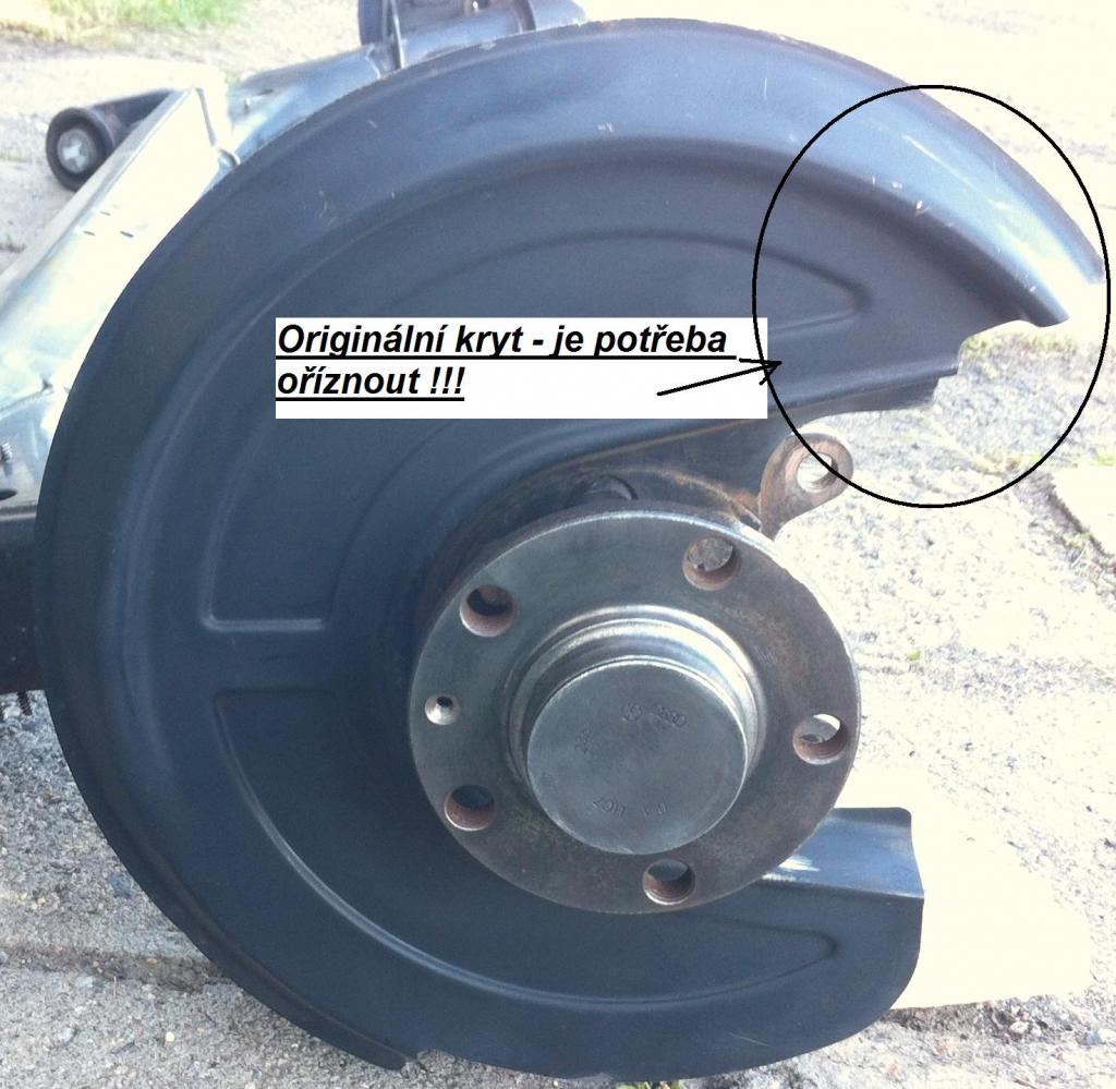 Jelikož adaptéry jsou pootočeny lehce nahoru, originální kryt za kotoučem se musí o kus uříznout. Je potřeba přikládat třmen s adaptérem a zkoušet aby