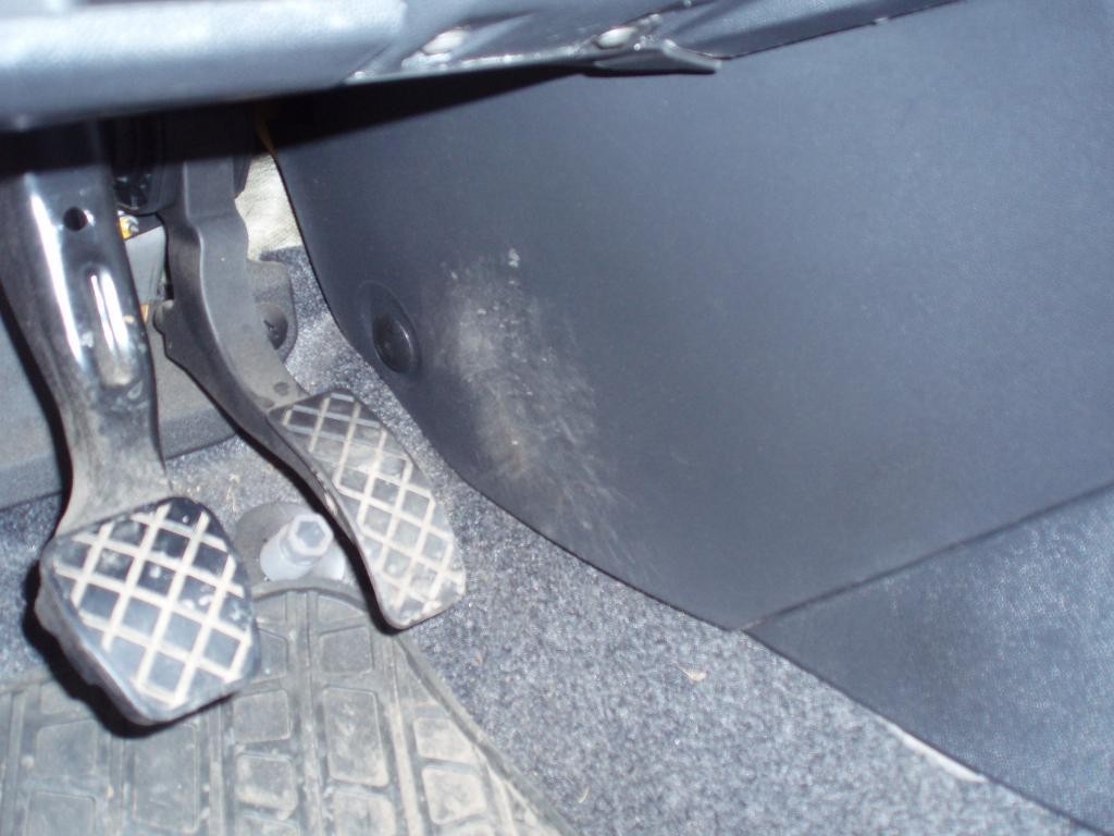Vytrnout dvě plastové příchytky, jedna u plynového pedálu druhá u spolujezdce na stejném místě: