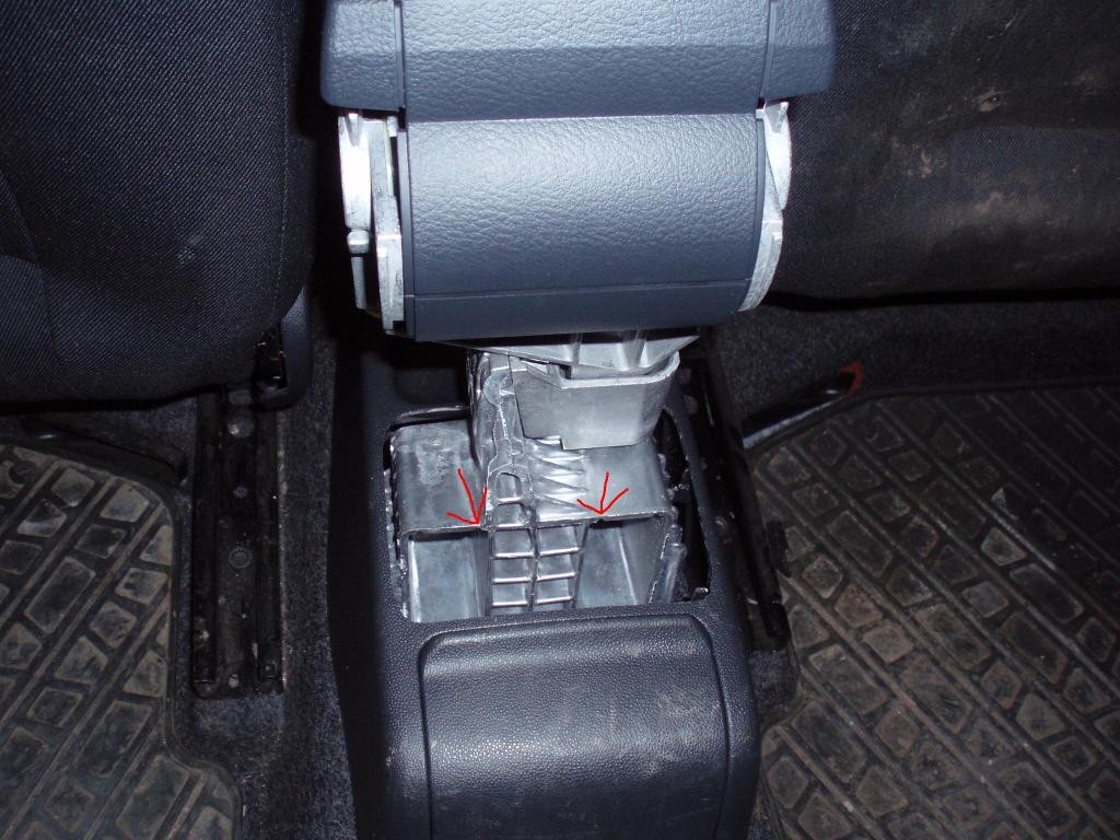 Pak rozpojit středový tunel od toho co je v prostoru nohou, dohromady je drží 4 průžinové západky: