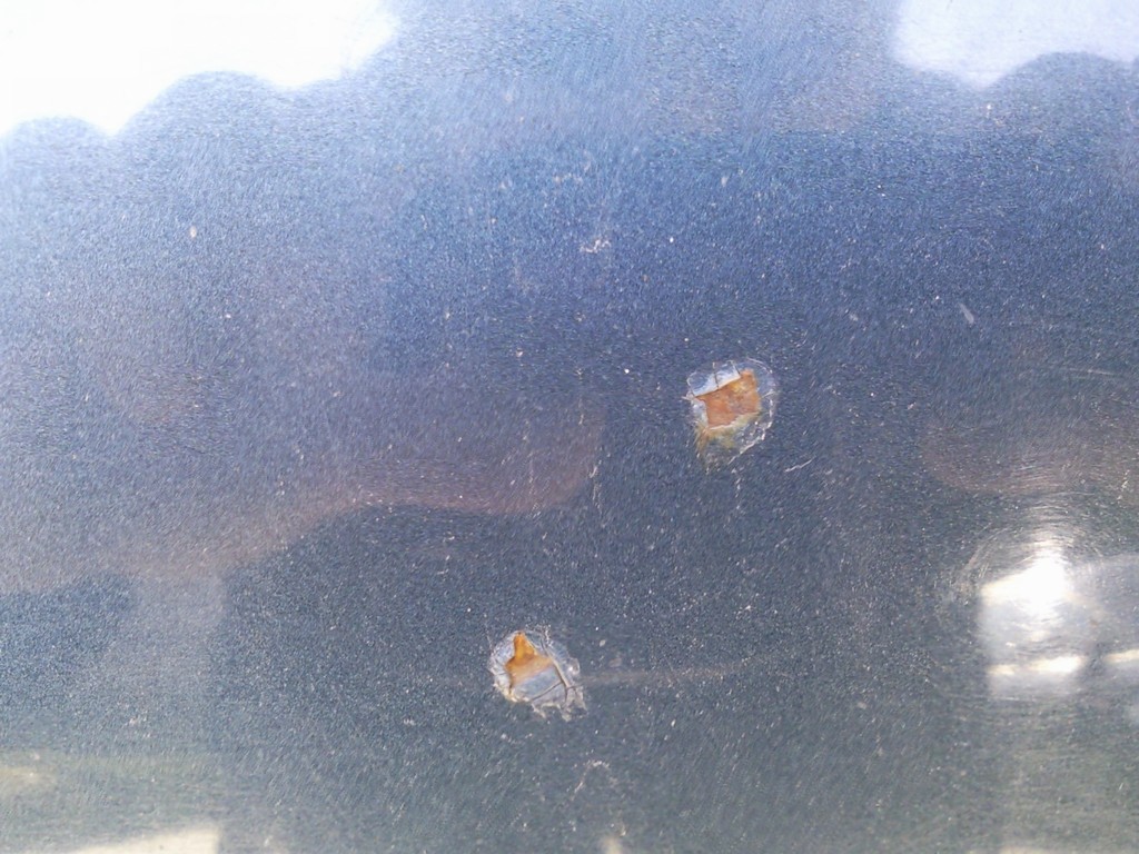 Treba dôkladne očistit hrdzavé miesta a poškodený lak okolo(na fotke je vidieť iba začiatok opracovavania kefkou) potom treba miesto dôkladne odmastit technickým benzínom.