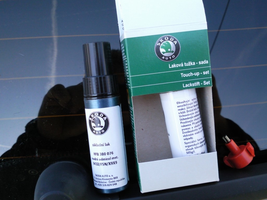 Na aute som už dlhší čas pozoroval oderky na karosérii. Nikdy som sa k tomu nedostal, nebol čas. Teraz som chcel spraviť nejaku udržbu na aute pred zimou a tak som sa dal aj na tieto nepekne vyzerajúce oderky na karoserii, konkrétne an zadnom kufri.  Išiel som do autorizovaného servisu a kúpil podľa VIN čísla presný kod farby.