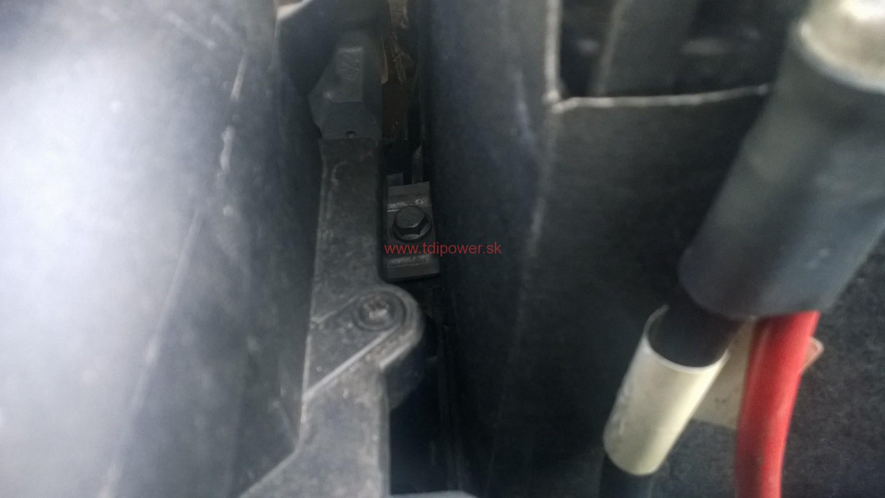 1. Najprv demontujeme ukostrovací kábel (-) mínus pól, býva uchytený čo najbližšie ku karosérii.