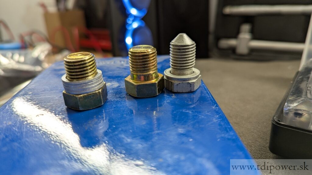 Potom už musíte mať na pamäti že hliníkové tesnenie bude v rozmere M15 a nepotrebujete vypustnú skrutku M14x1,5. Dávajte si pozor na opravne sady závitov olejových vaní. Niektoré opravné sady akú som mal aj ja, majú za závitom zlý úkos. Preto som musel použiť 4 tesnenia a dotiahol som to na 25Nm. Po 2000km nebola okolo závitu ani slza oleja. Už som kúpil do foroty iné skrutky.
