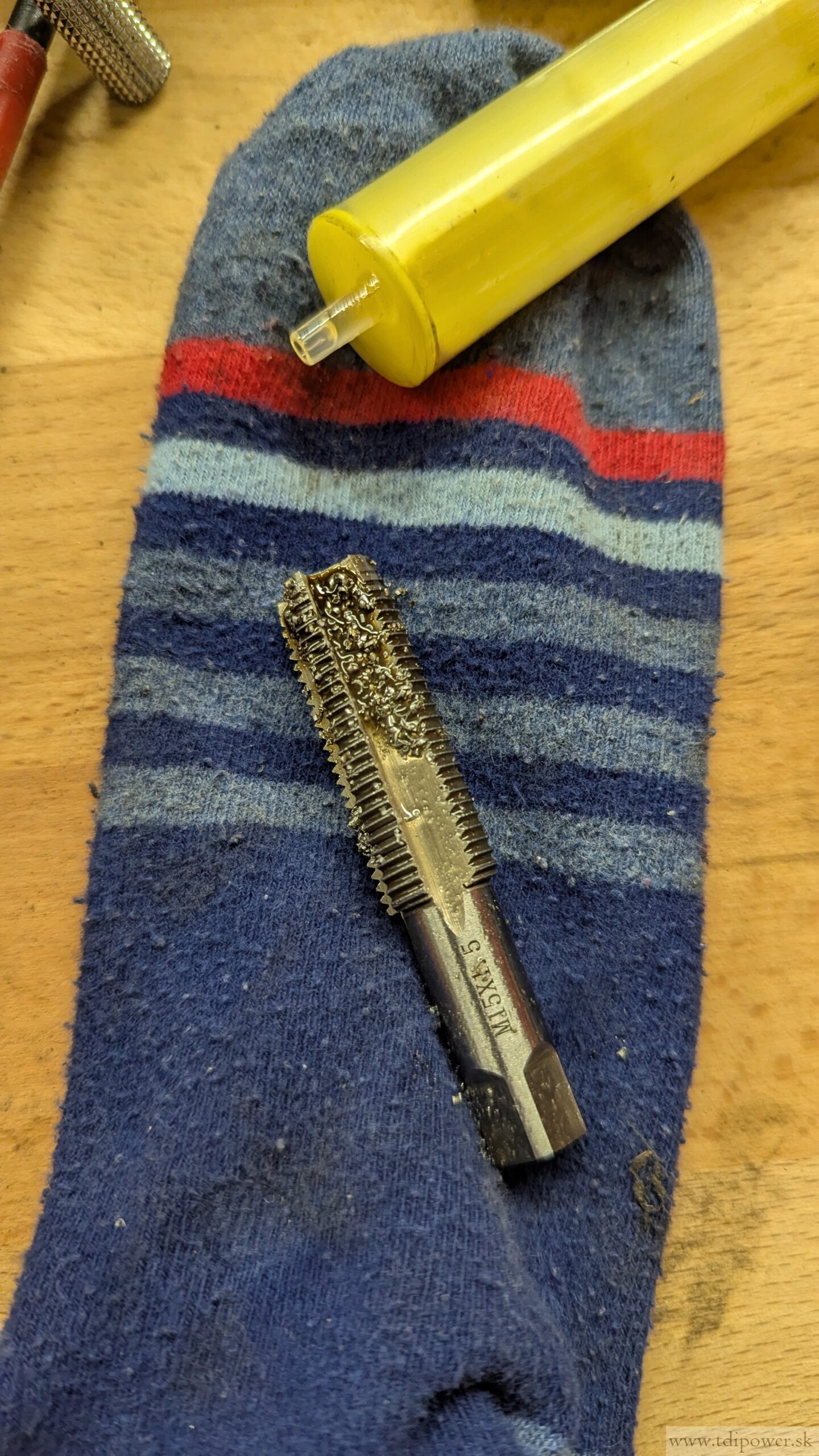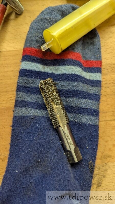 Neviem či si to spôsobil samotný majiteľ, ktorý si už nevedel rady alebo mechanik s rázovou utahovačkou. Majiteľ podľa jeho slov o tom netušil. Priniesol si zo sebou aj novú vypustnú skrutku, tak pravdepodobne nevedel. Pôvodný závit tam bol M14x1,5, ktorý bol zničený.